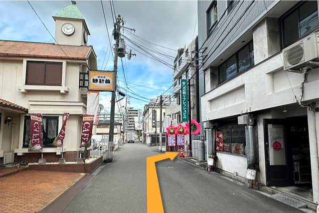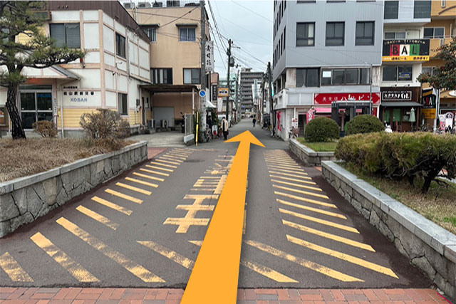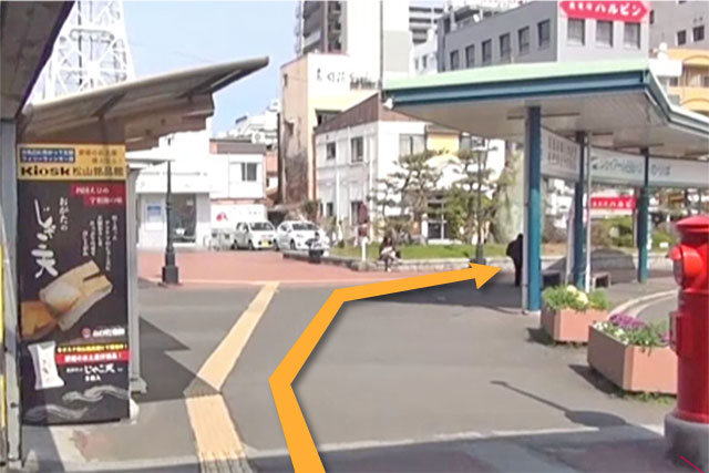 1 JR松山駅正面を左へ曲がります。